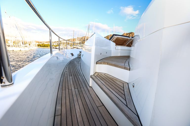 Renewed Teak on Platform, Cockpit, Sides and Bow in 2021