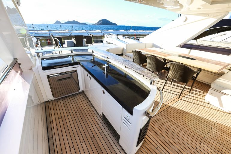 Flybridge GRP hardtop with electrically operated opening centre section in white soft fabric